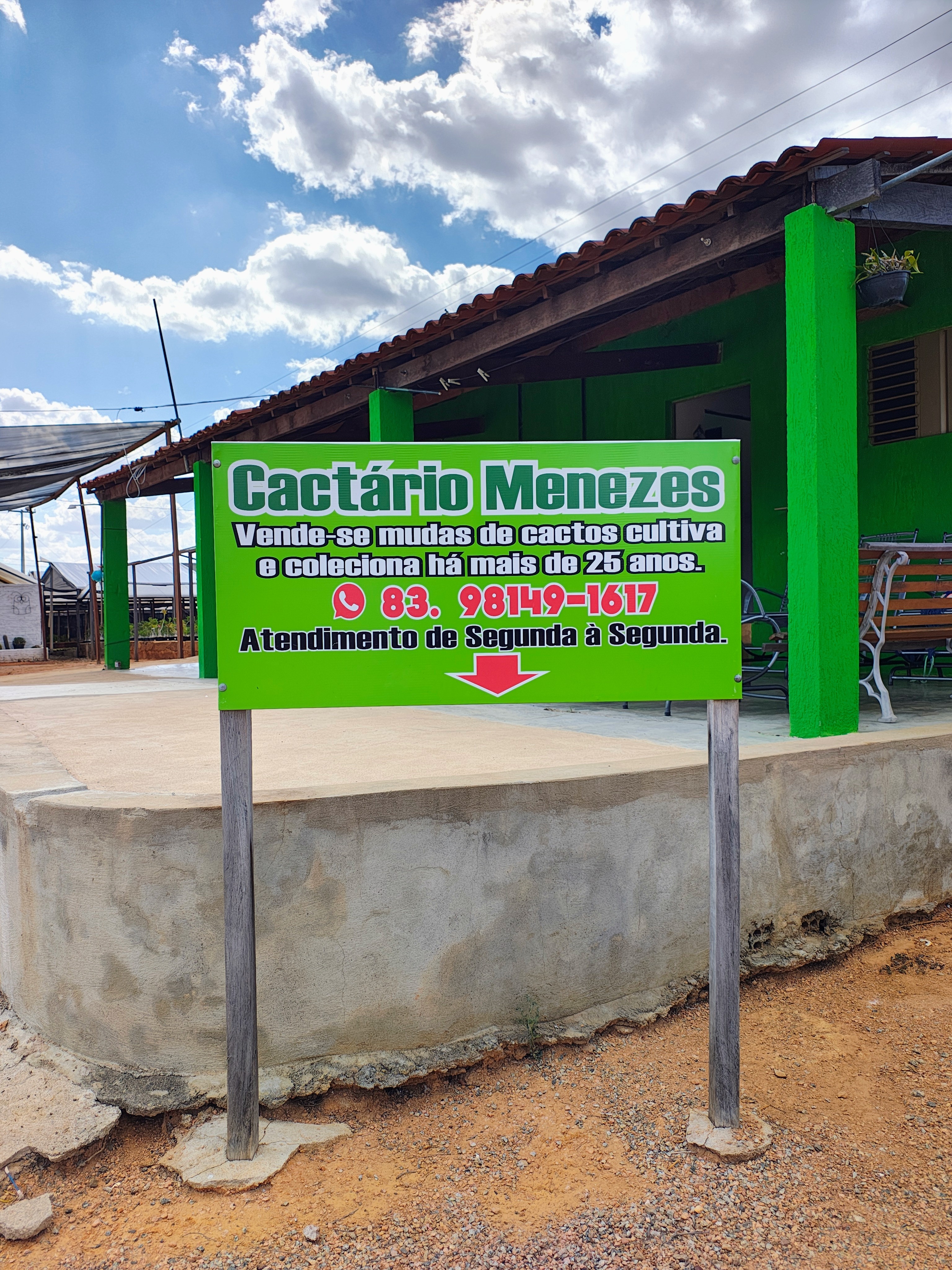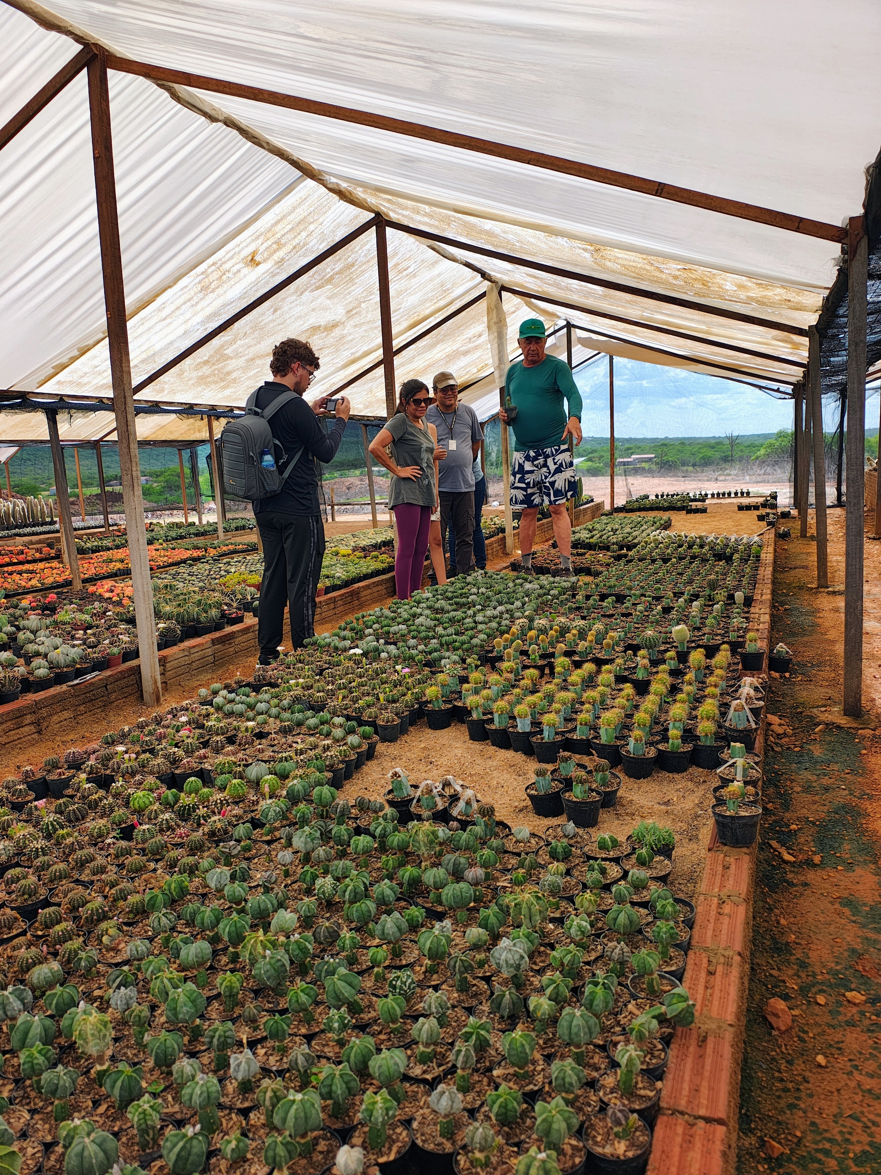 Visita guiada ao Cactário Menezes, jardim especializado em cactos e suculentas localizado às margens da BR-230, com coleção de espécies raras e exóticas, estufas, explicações botânicas e vivência visual única para amantes de plantas e natureza.